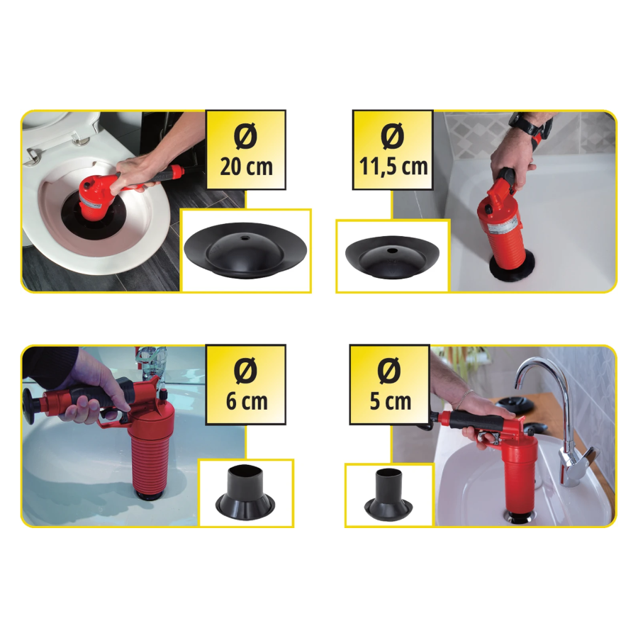 ROTHENBERGER INDUSTRIAL PUMPA ZA OTPUŠAVANJE TOALETA 4 BARA je pouzdan alat za brzo i efikasno uklanjanje začepljenja u toaletima i odvodima. Zahvaljujući radnom pritisku od 4 bara, omogućava snažno izbacivanje vode i otpušavanje bez potrebe za hemikalijama.