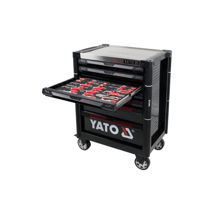 YATO kolica sa alatom (157 delova), model YT-55308, predstavljaju savremeno i bezbedno rešenje za profesionalne radionice.