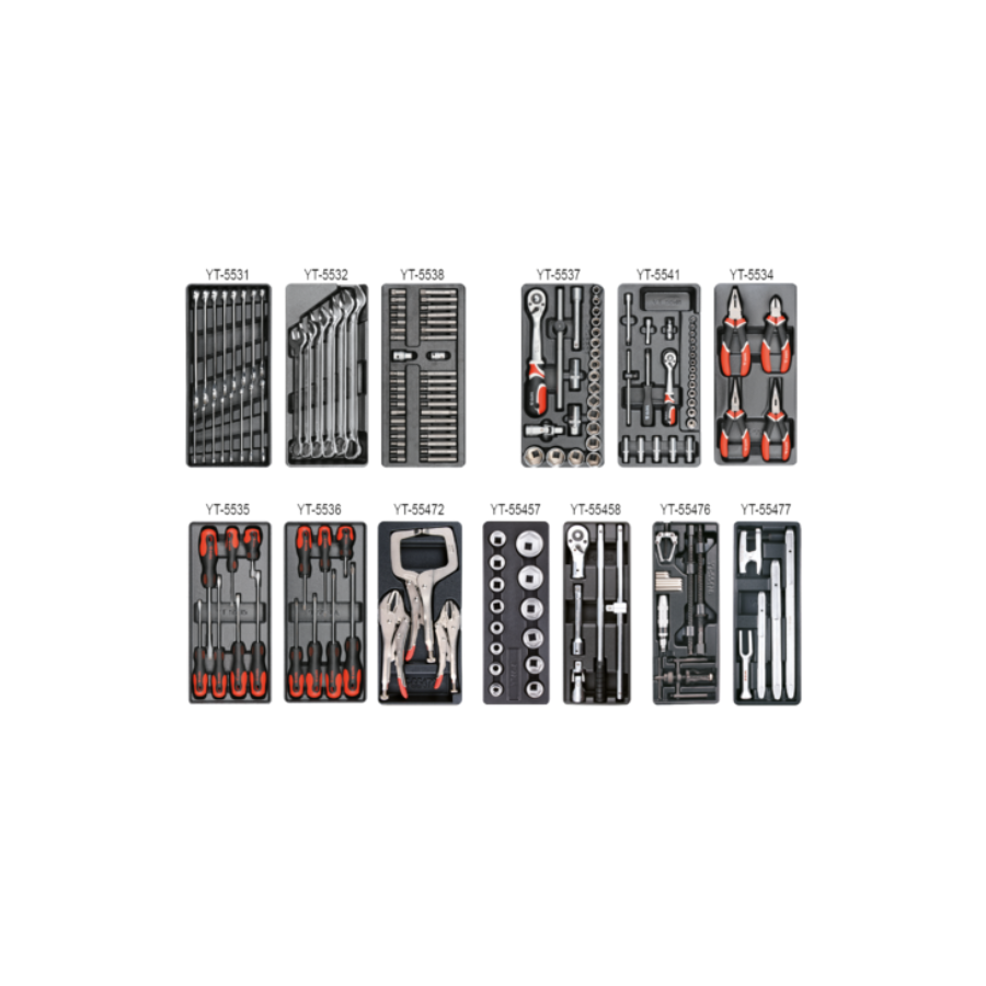 - Fioka 4: Nasadni ključevi 1/2" YT-1203~YT-1243 (od 10 do 32 mm), račna, produžetak i kardanski zglob.