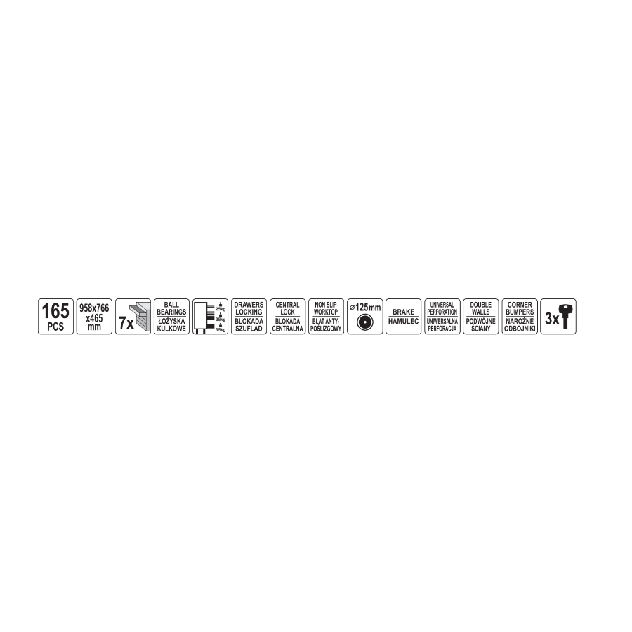 Ormar za alate YATO opremljen je sa 7 fioka na kugličnim vodilicama.
