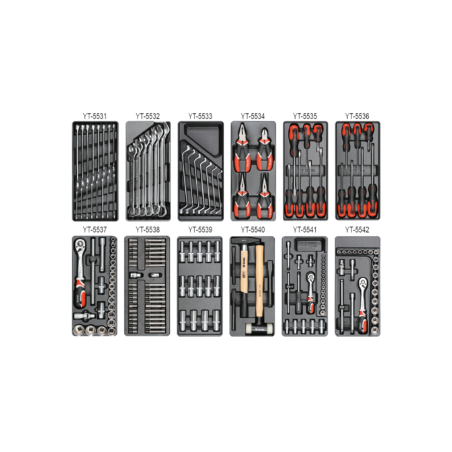 Kompletan set: 211 alata raspoređenih u 5 fioka, uz 2 dodatne prazne fioke za proširenje.