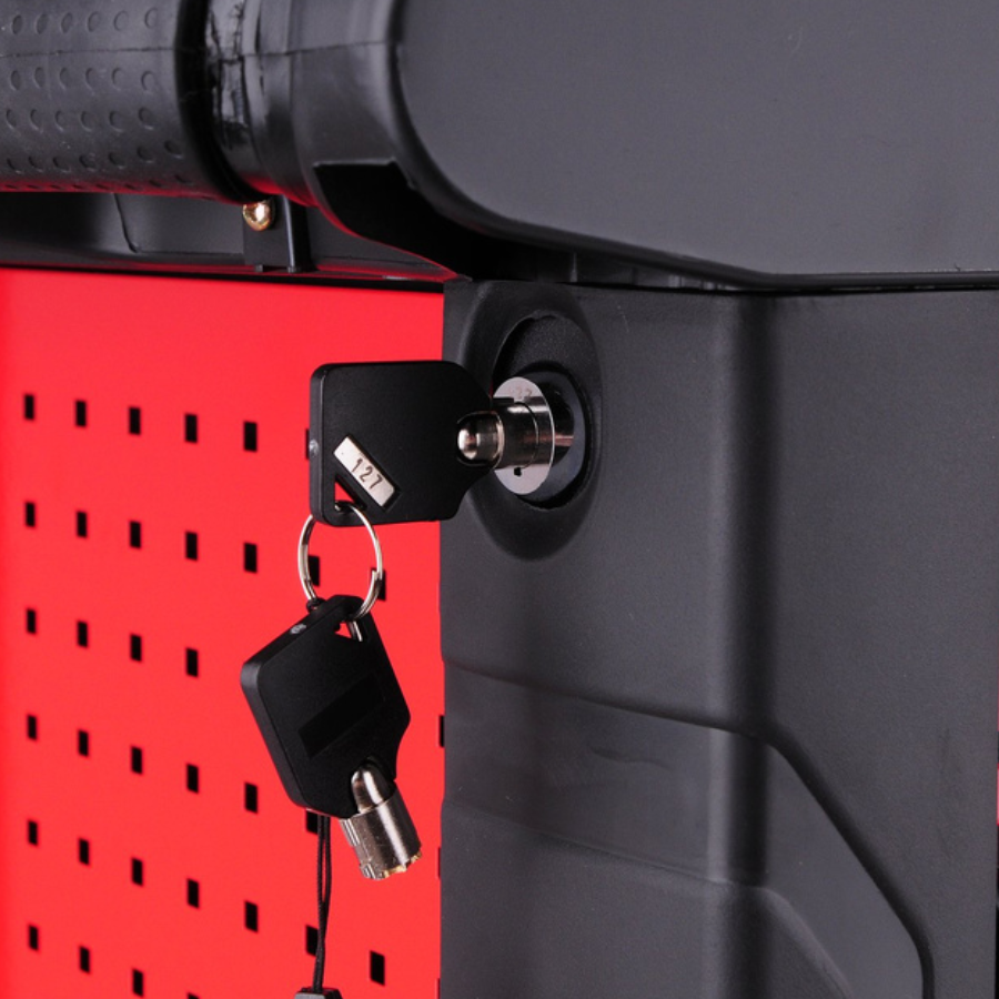 Radionički ormar ima zaštitne branike na uglovima koji štite od slučajnih oštećenja, npr. karoserije automobila.