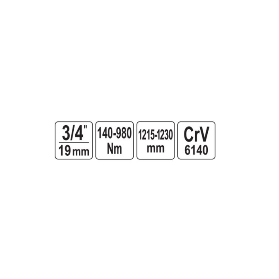 Veličina prihvata alata: 3/4" (19.0 mm) Obrtni moment: 140-980 Nm Dužina: 1215-1230mm Materijal glave: CRV 6140