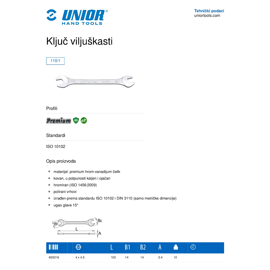 Unior viljuškasti ključ 17x19 mm izrađen je od visokokvalitetnog hrom-vanadijum čelika, što ga čini izuzetno otpornim na habanje, lomljenje i koroziju.