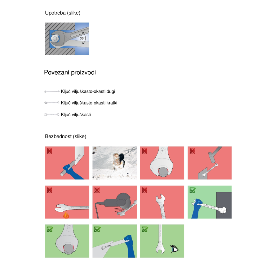 Viljuškasti ključ dimenzije 8x9 mm napravljen od hrom-vanadijum čelika.